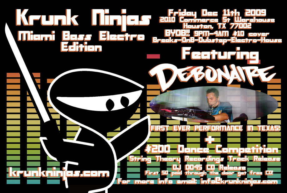 Krunk Ninjas will be showcasing some of the best in Breaks, DnB, Dubstep, Electro, House and a multitude of the sub-genres under, over and in-between. There will for sure be sounds that will wet the taste buds of EDM fans across the board. So come get "Krunk" with us and you will for sure have a good time.